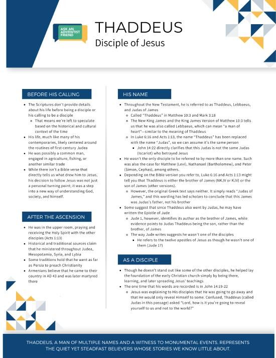 And Thaddeus wasn’t the only disciple to be referred to by more than one name. Such was also the case for Matthew (Levi), Nathanael (Bartholomew), and Peter (Simon, Cephas), among others.